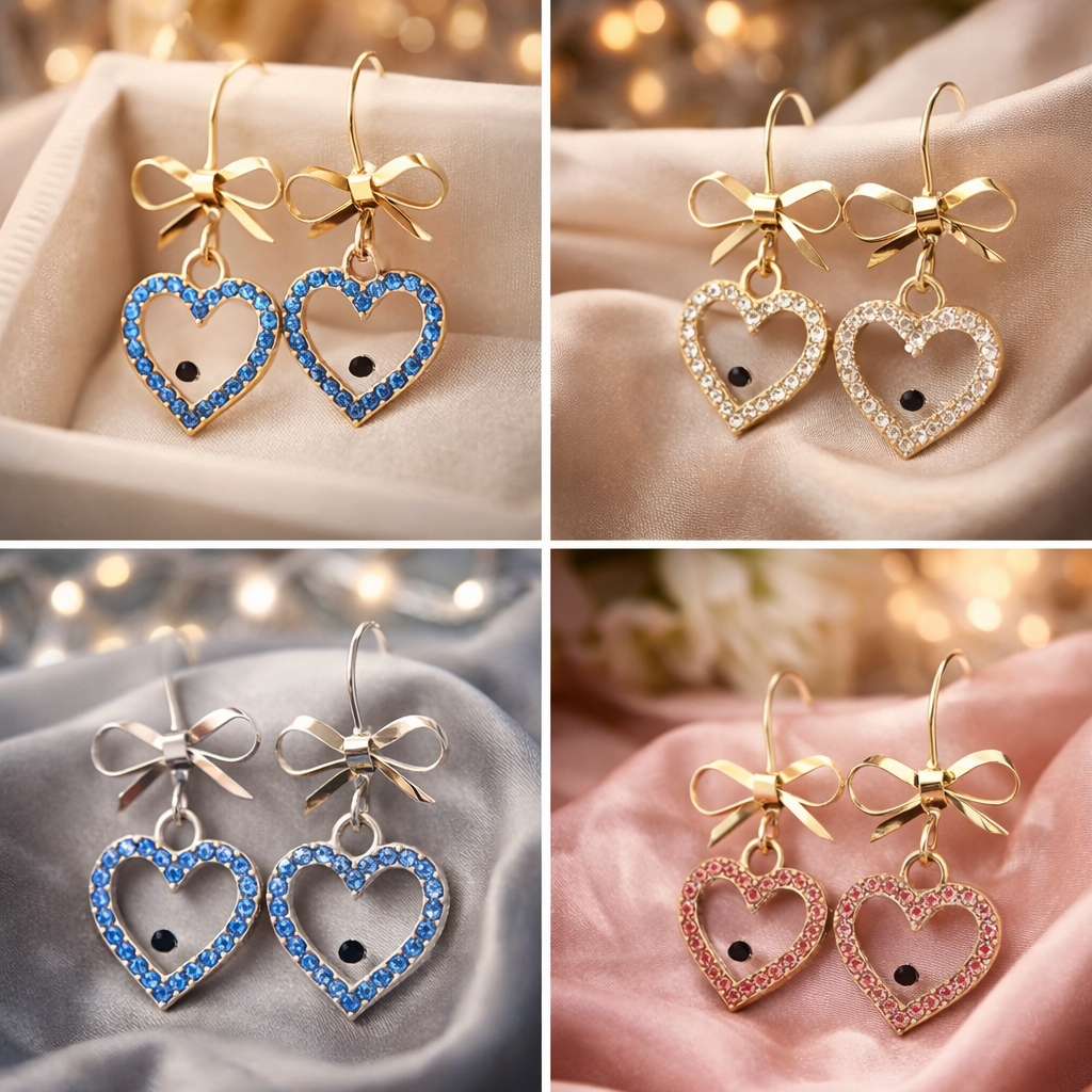 Boucles d'oreilles en plaqué or ou argent sterling avec coeur en alliage résistant et strass de couleur